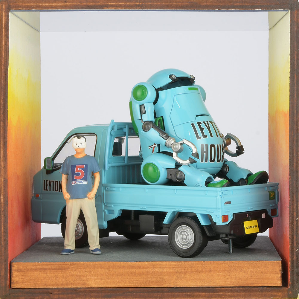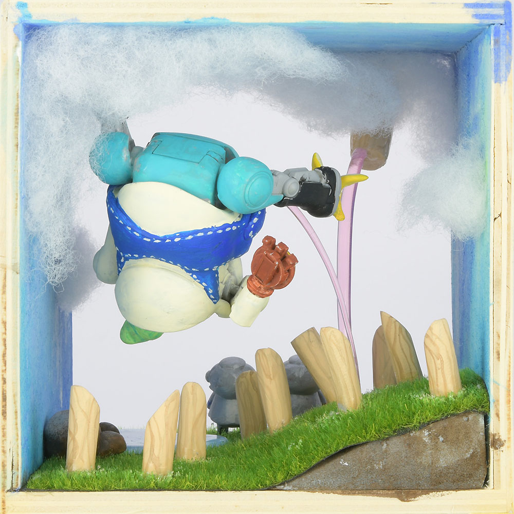 私がハセガワのアオノだ。プラモの箱の絵描いてよ。