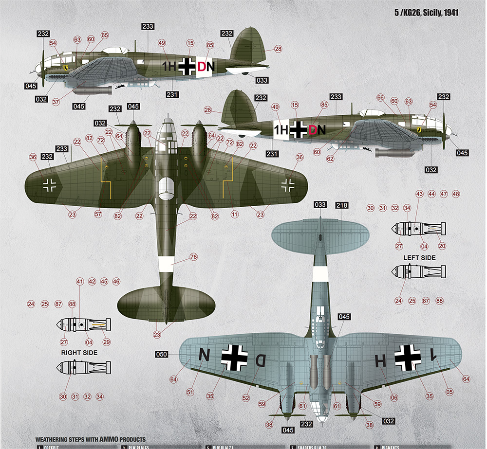 ・エッチングパーツ付属 ・マーキング4種選択式 ・クリアー部品付属 ・エンジン、コックピット、内装フルインテリア ・MG15機銃を再現した機体上部銃座 ・SC250爆弾、SC1000爆弾、LT F5b魚雷付属