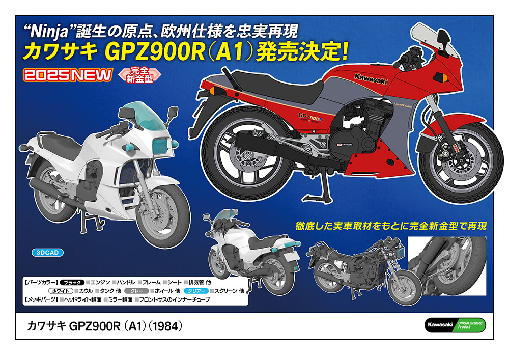 キットは徹底した実車取材をもとに、カワサキ GPZ900R(A1)の
