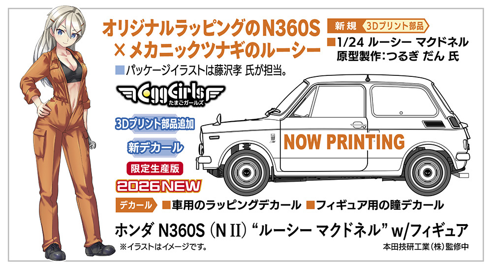 ホンダ N360S (N II)と、 同スケールの「ルーシー マクドネル」の 3Dプリントフィギュアキットのセットです。